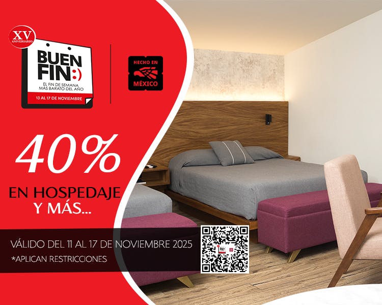 Desde el 11 hasta el 17 de noviembre, obtén un 35% de descuento en todas las habitaciones, y a partir de tres noches reservadas, aplica para un descuento del 40% en su hospedaje.