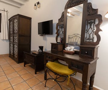 Experience the comfort of our air-conditioned standard room, featuring two double beds, where meticulous attention has been given to every detail to curate a unique and welcoming atmosphere. Enjoy the convenience of amenities such as a hairdryer and a coffee maker, ensuring a delightful wake-up experience. Stay connected with complimentary WiFi, and unwind with cable TV.